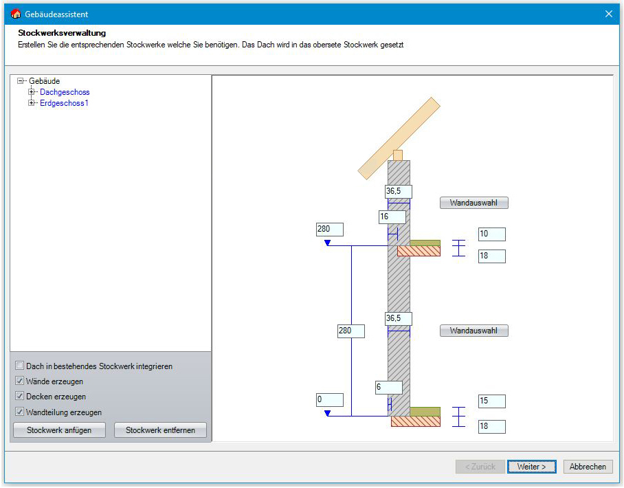 Einfache Dacherstellung mithilfe des integrierten Assistenten: